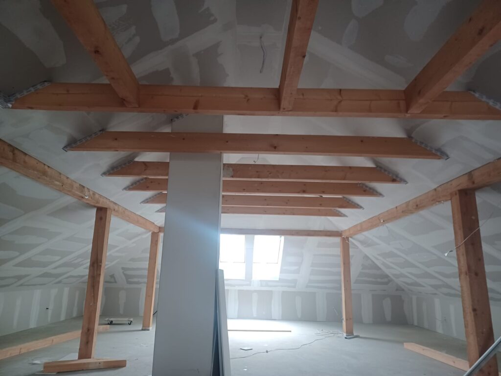 Professioneller Trockenbau und Innenausbau in Mönchengladbach und im Umkreis von 60 km. Wir erstellen Trennwände aus Gipskarton, führen Dachausbau durch und bauen Akustikdecken sowie Brandschutzlösungen nach aktuellen Standards. Außerdem übernehmen wir Spachtelarbeiten, Malerarbeiten, die Montage von Türen sowie die Verlegung von Vinylböden. Auf Wunsch realisieren wir komplette Wohnungsrenovierungen – alles aus einer Hand.